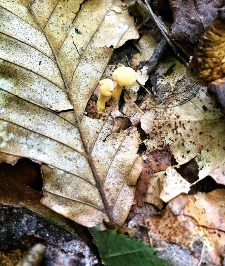 I collect my favorite leaves on the end of my trekking pole as I walk and they ride with me for as long as they can hang on.