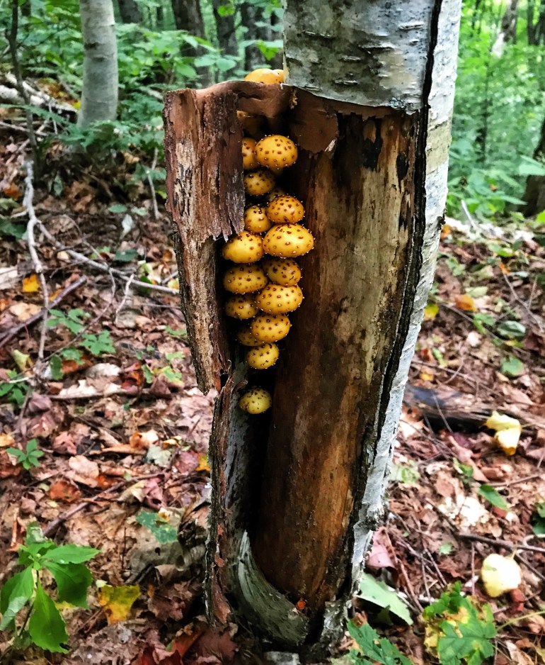 s’cute log of teeny mushrooms.